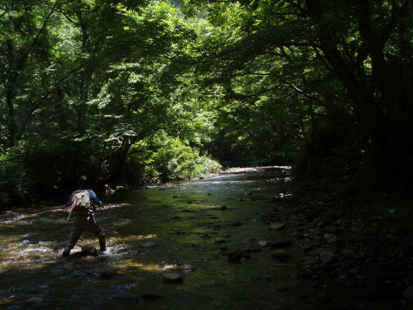 この川も減水しているが、歩きながら淵を見ているとイワナがひらひらと泳いでいる。