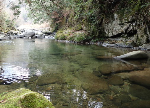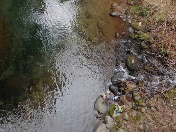 橋から放流しているためか、この深みに魚がたまっているようだ。