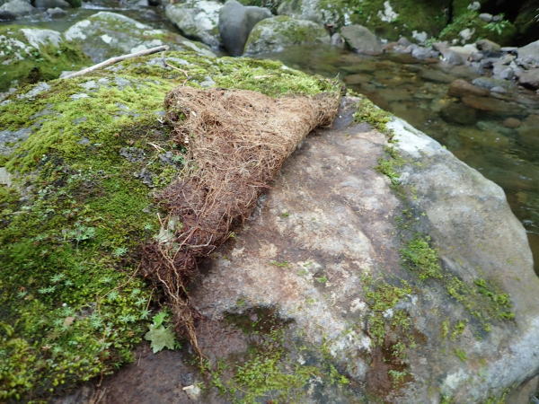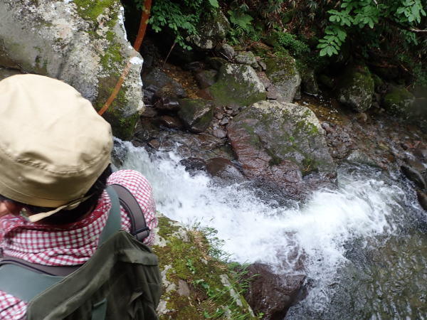 川が濁ってきたので焦って川から上がる。急な入渓点をよじ登るのでたいへんだった。