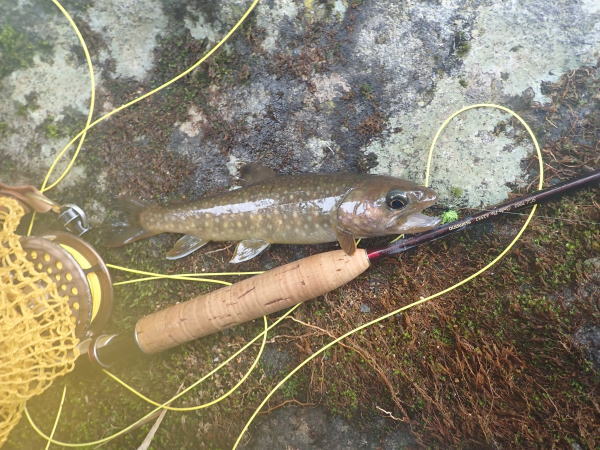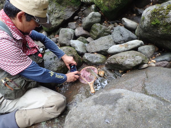 別な川に入り直したが、先行者がいたためか一美さんがヤマメを1匹釣ったのみ。