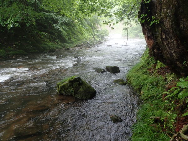 台風が日本に接近していることもあり心配なのだが、根拠なくきっと大丈夫、という判断のもと小雨の中、川に入る。