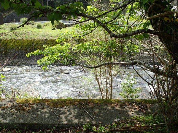 一昨日の雨の影響で川は増水。