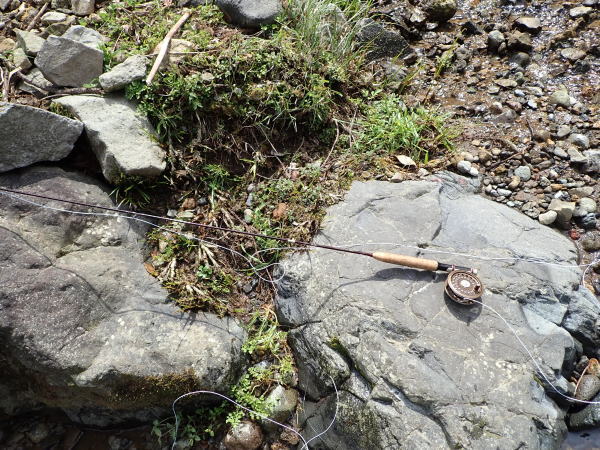 フライを見てみるとティペットが絡まっている。今日は上流に向かって風が吹いているので気をつけなくては、と思っていたのに。