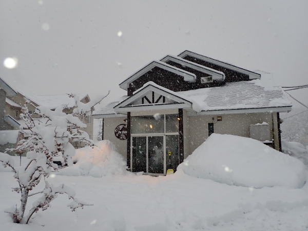 昨日、おやど風来坊に到着したときには、前の村道に雪が積もっていた。