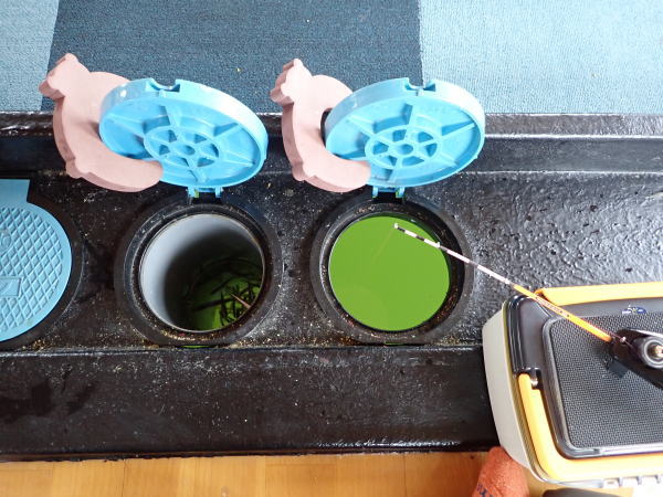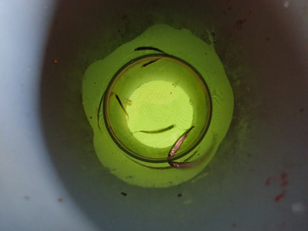 (下)達人の釣果。もはや水槽内は水より魚のほうが多い。