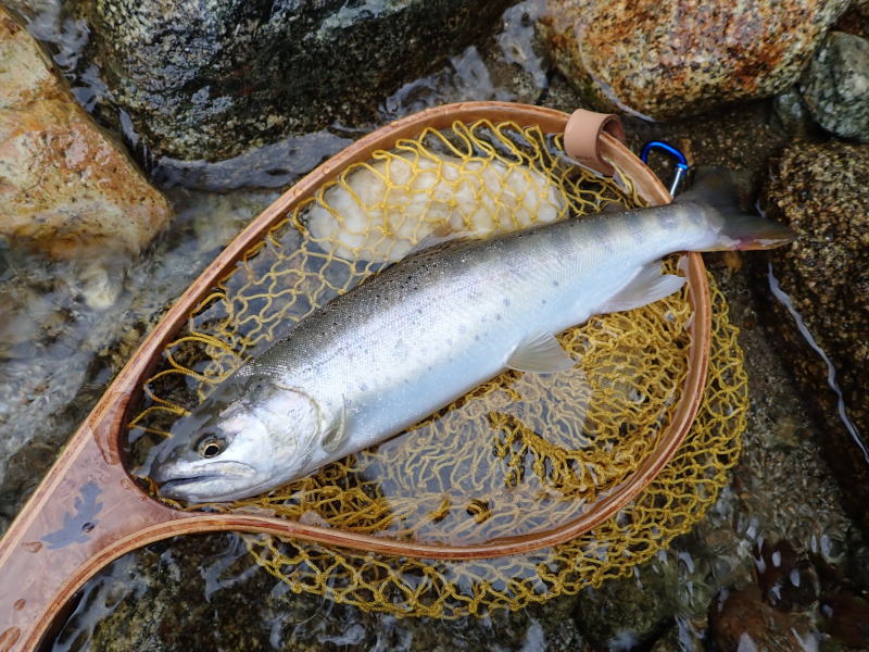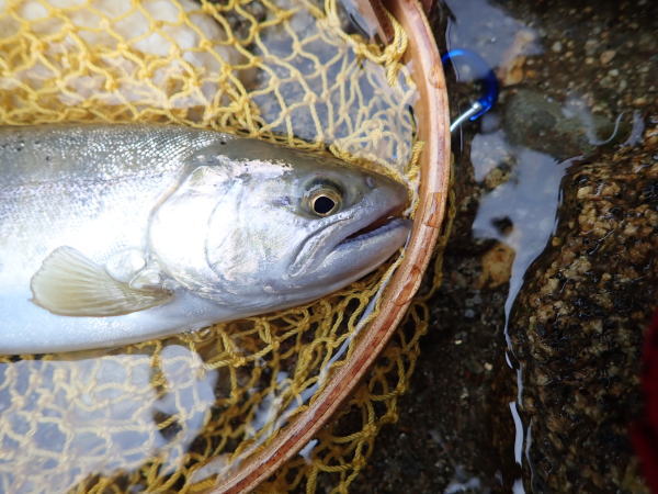 などと思いつつ2段ほど下り、やっと魚をネットで掬いました。