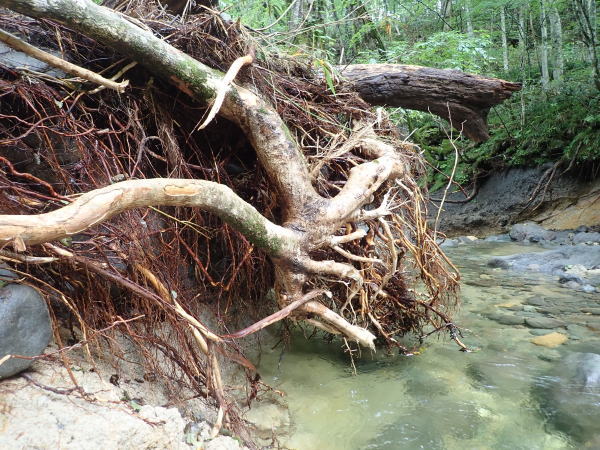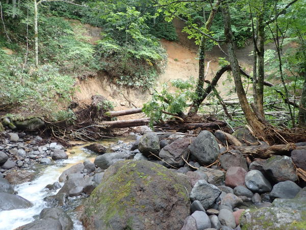 土砂が溜まっている所、崖が川の水でえぐれている所もあり、ちょっと身の危険を感じるくらいです。